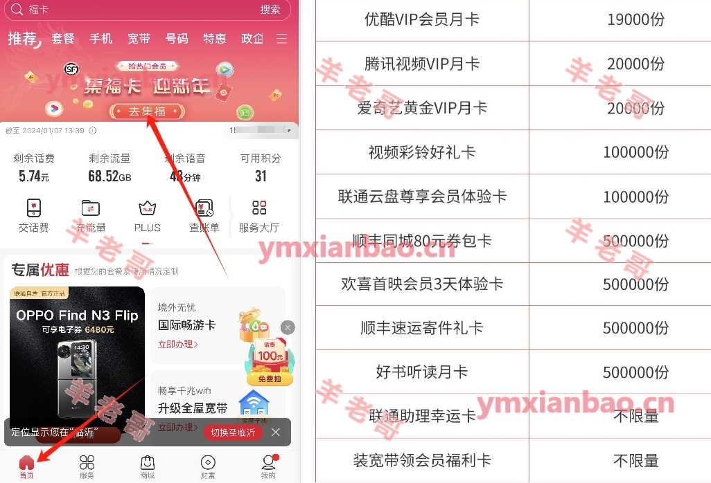 联通集福卡抽视频月卡+瓜分