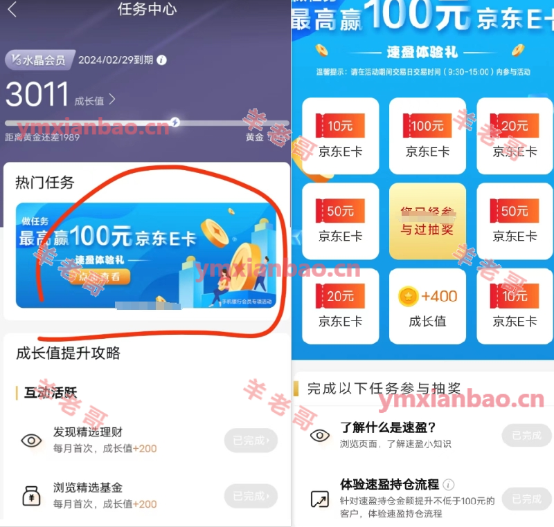 更新新的一期,建行APP->我的->会员中心->风评体验礼或者速盈体验礼->随便买100亓得次数然后去抽奖(目前完成有延迟),抽完之后再去撤销回来就行了,撤单搜投资理财,持有,交易明细里撤