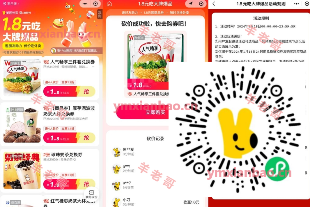 美团4人助力1.8元爆品兑换券