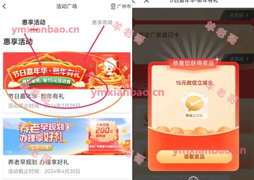 广发app,我的,活动广场,新年有礼,不知道特邀条件是什么,部分人有,直接领15。或者直接搜:节日嘉年华,就可以看到入口