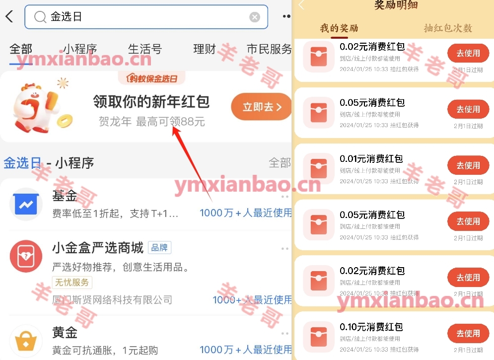 支付宝APP搜索【金选日】点击横幅图片进去,完成多个简单的任务可以开礼盒抽红包,金额随机