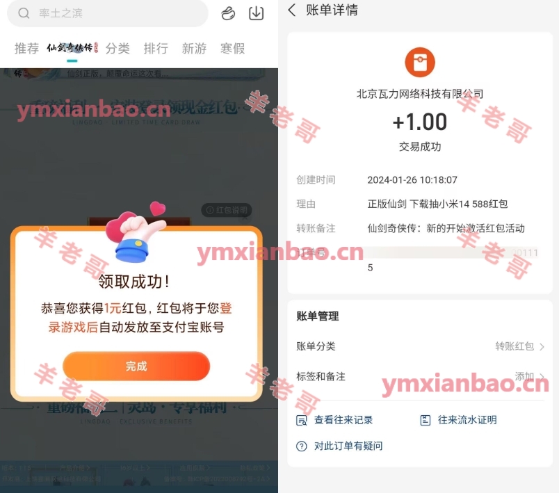 小米游戏仙剑奇侠传1亓红包