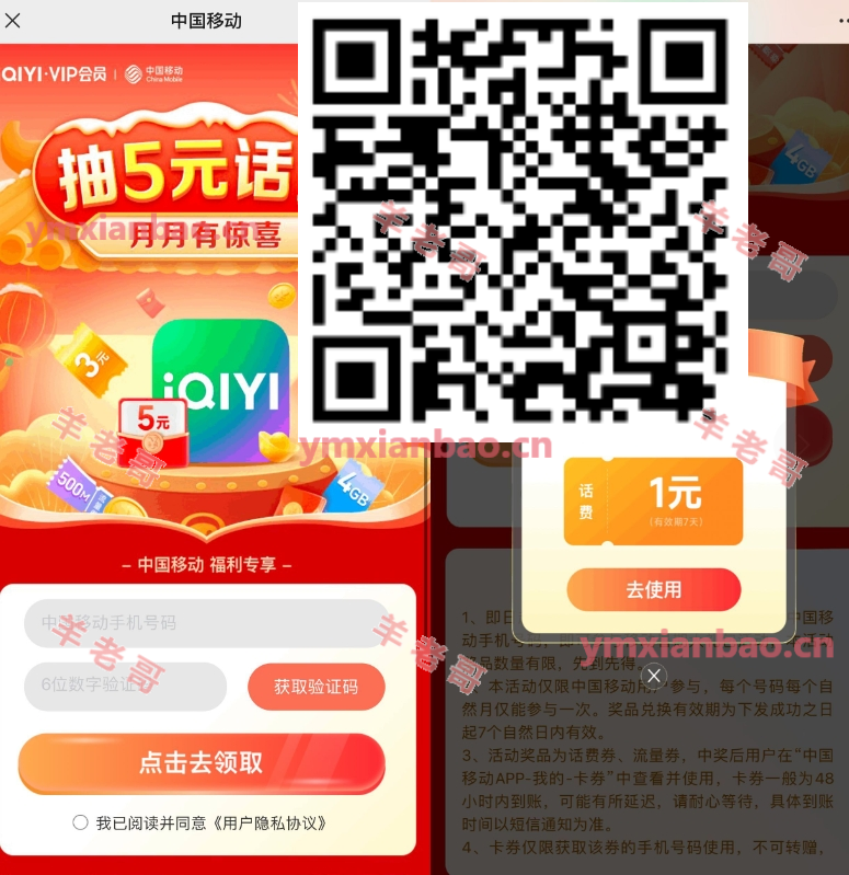 登陆后直接抽1~5亓话费券或500MB/4GB流量日包