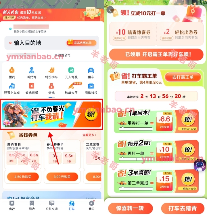 百度地图APP底部“打车”->累计打车1/2/3次分别领6.6/10/15亓券,刚好要打车的可以看看!今天有15-10亓或10-10亓打车券,限今日7~19点使用