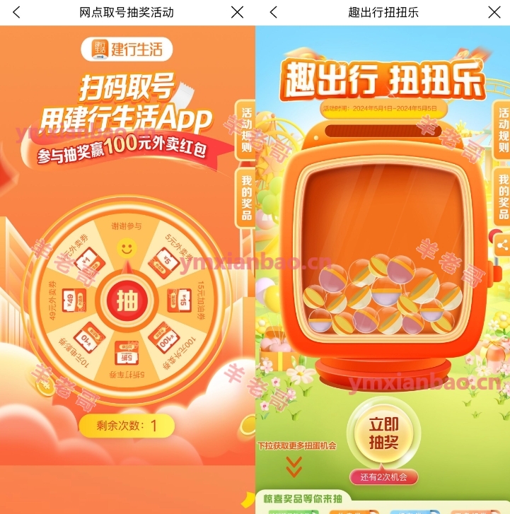 建行生活5月半夏有礼抽外卖券