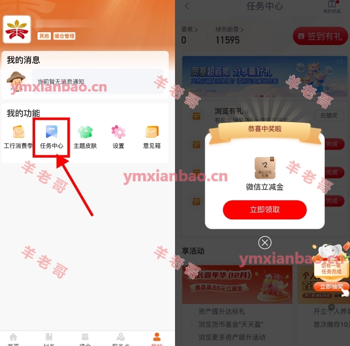 工银兴农通APP->底部“我的-任务中心”->简单浏览抽1~5亓立减金