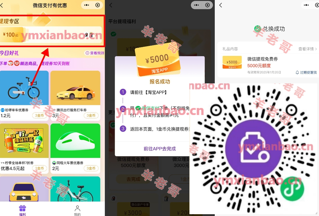 微xin识别,先去报名一下,再去淘宝的天猫超市随便买个东西用VX支付,重新进入使用1金币兑换,再去退掉刚刚的东西就行了