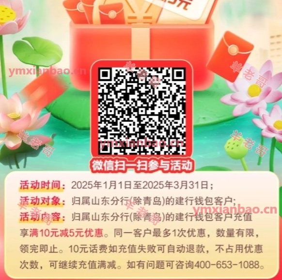 需山东建行(除青岛),使用建行数币冲10话费-5