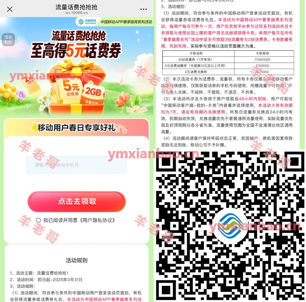 登录后随机抽,卡券去中国移动app-我的-卡券,激活一下就到账了