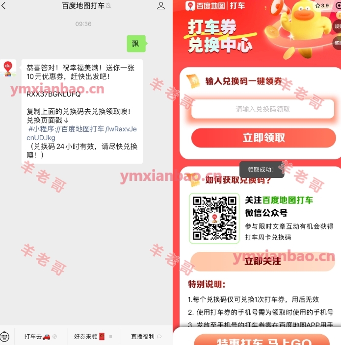 微xin公众号:百度地图打车,发送“飘”,复制兑换码根据提示兑换,券是满25亓立减10亓的