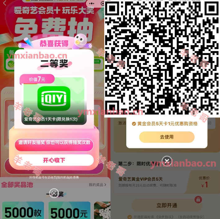 微xin识别,有2次机会直接抽,抽中会员根据提示兑换,还能1亓开5天爱奇艺会员