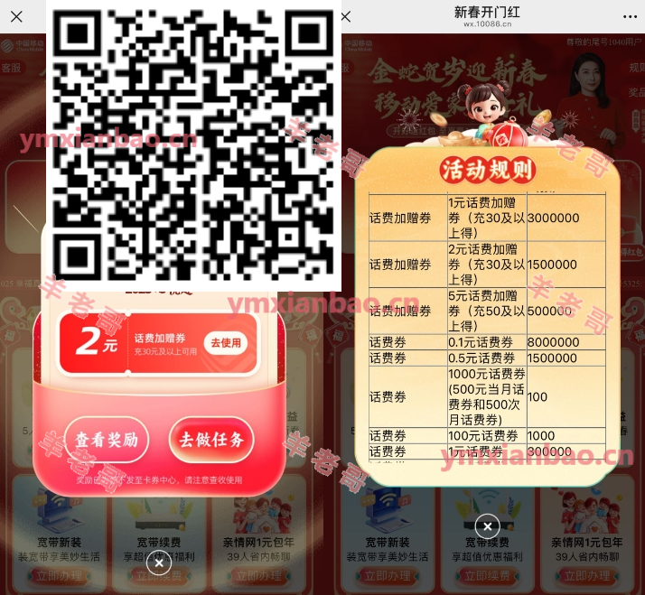 移动新春开门红抽1000亓话费