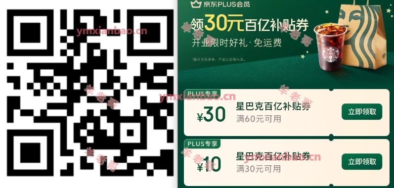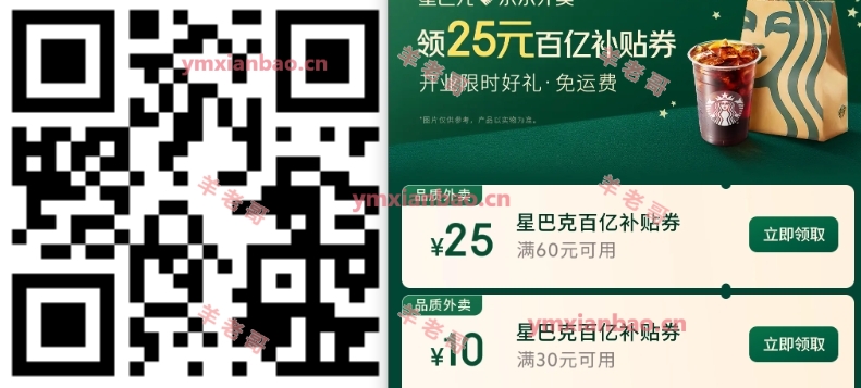 京东星巴克60-30/25亓外卖券
