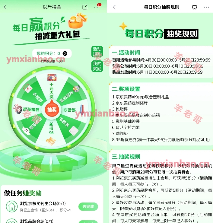 京东搜索“以斤换金”,下拉浏览得积分,每20积分抽小药箱等实物