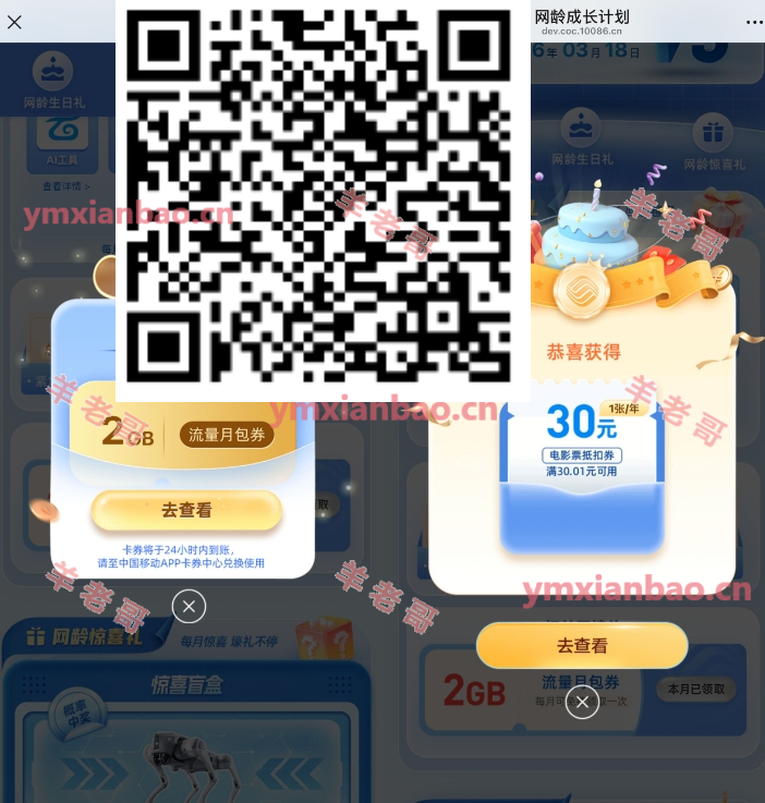 移动网龄生日礼30亓电影票