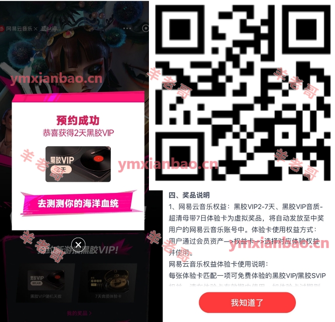 跳转到网易云音乐APP,预约抽2~7天黑胶会员