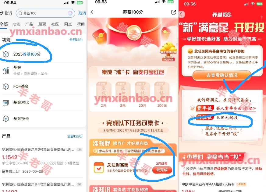 交行app搜索养基100,符合的关注领2zfb立减金,不符合的尝试任选一个买0.1,等两天再去看看达标,下拉还有达标1k-10w单独。