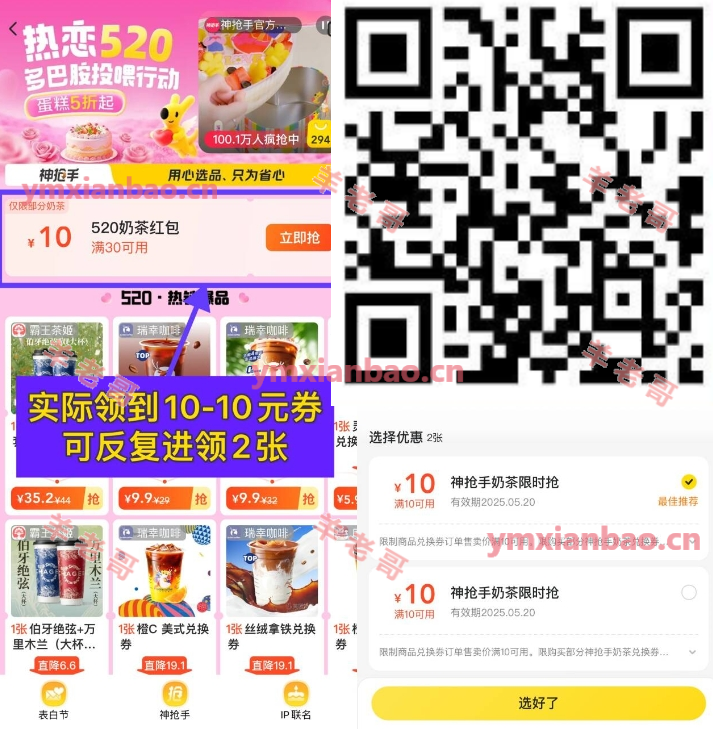 美团或微xin识别领30-10亓奶茶红包,实际是10-10亓券!领2张!
