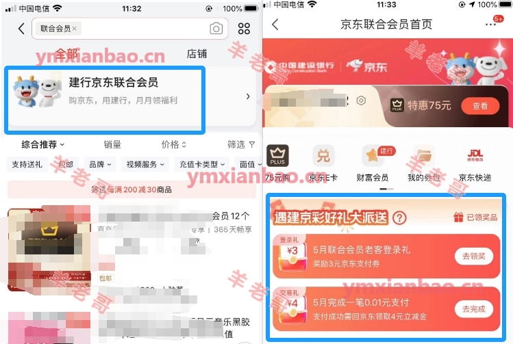 京东app搜联合会员。6月首次登录3,下面0.01可再领4,不显示多进几次,名额先到先得,没了会不定时补货,可以在京东最后实付时候用建行卡立减,再搜:有惊喜501,领叠加通用荭包,任选4+商品,非plus会员不要选直营的,最后建行出优惠实付0.几(付的时候才出显示)。首页叫外卖也可以抵扣!注意京东与建行手机号一致抵扣