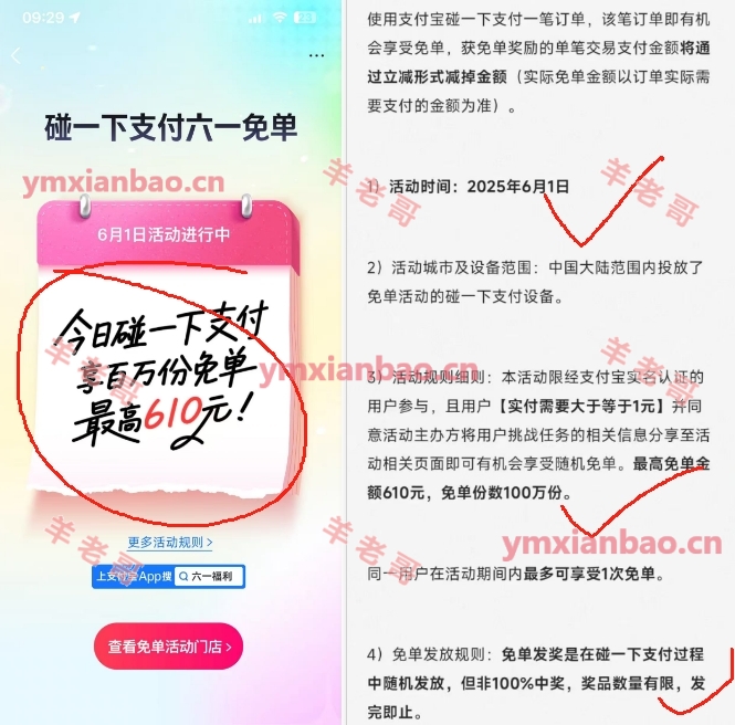 今天支付宝试用碰一碰,随机兔单100W份,有1000个610 ,有小蓝环自己碰自己小号试试,一次不出就多碰几次,时间隔开,搜支付有礼,抽碰一下券。支付宝0亓: