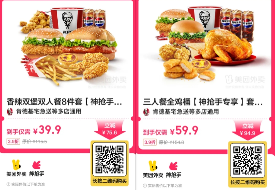 可外送,过期可退,肯德基香辣双堡双人餐8件套仅需39.9:http://dpurl.cn/cIvk7EOz ,肯德基三人餐全鸡桶仅需59.9:http://dpurl.cn/kaNLocXz