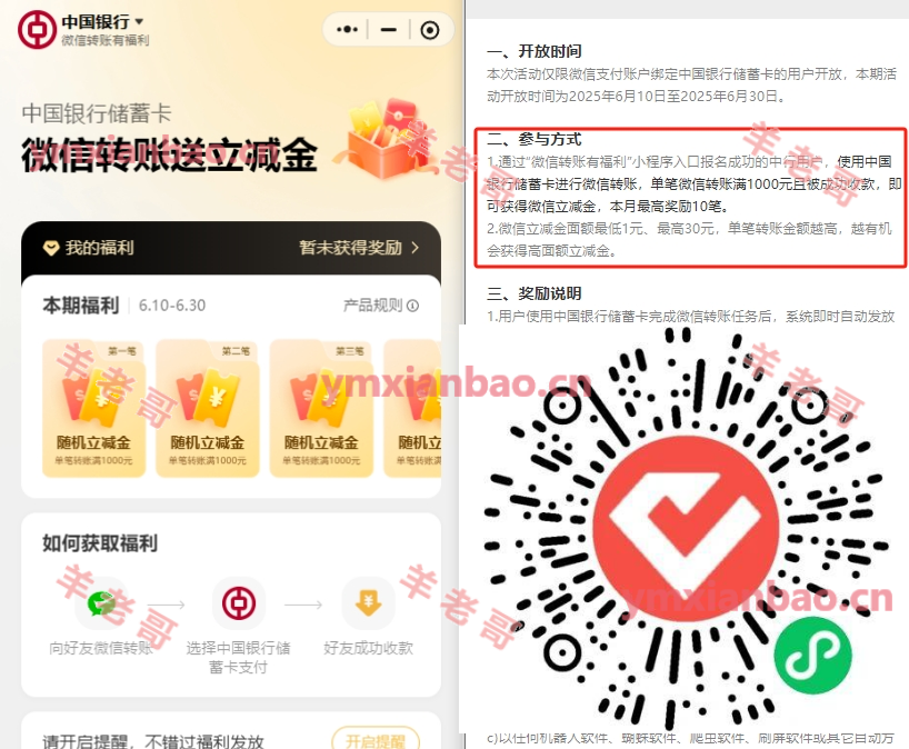 微xin识别先报名,中行:单笔满1000可得最高30亓立减金,每月最多可参与10次,最低1最高30,金额越高面额越高微xin识别先报名,使用建行转,单笔满3888可得最高10亓立减金,每月最多可参与6次