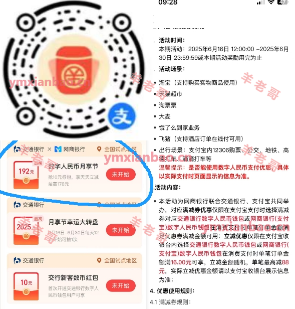 支付宝搜数币节,12点开始,有16亓交行或网商行数字券,最好是准点去,不然秒无!满4.01-4/满10-4/满80-8,可用渠道如下图,自测深圳通抵扣(或不支持。zfb-商家服务-经营收款单-发起收款-同实ming不出)。