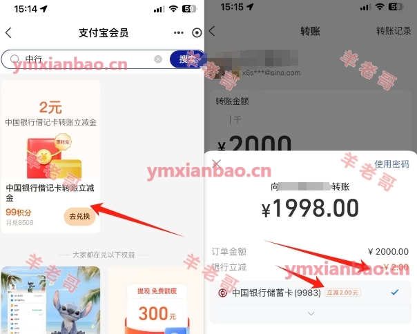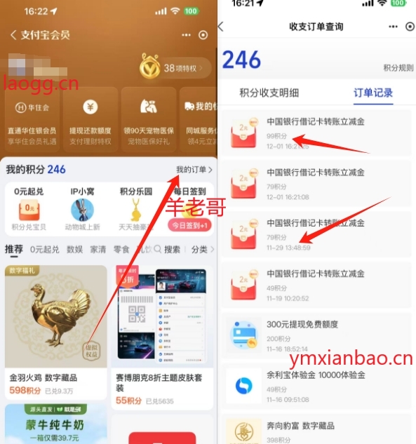 支付宝-我的-“支付宝会员”,历史兑换过的,去订单记录里,下拉找到以前兑换的记录点券进去换,分别是99,18,79积分兑换,三种都能换这个应该还没有更新:搜索中行,有2000-2券,直接转小号或别人2k选中行可以抵扣叠加11月新一期!中行支付超给力,先报名参加,达标后次月8号手动抽立减金。 叠加:微xin中行/建行卡转账送最高30/10亓立减金,微xin识别先报名,中行:单笔满1000可得最高30亓立减金,左上角切换建行:单笔满3888可得最高10亓立减金,转小号就行