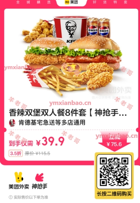 可外送,过期可退,肯德基香辣双堡双人餐8件套仅需39.9:http://dpurl.cn/DfT1mhGz