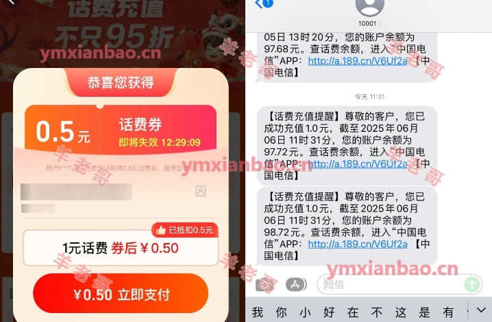 淘宝app识别,两个活动0.5冲1,一个手机号一个月只能充五次,满了的换号