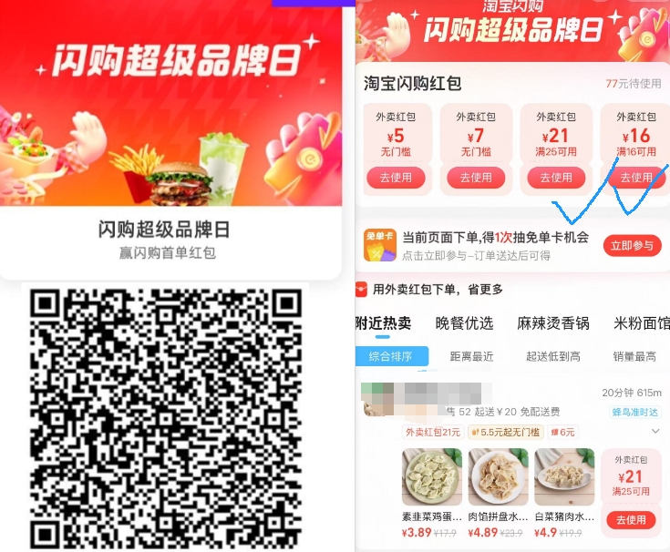 淘宝app识别或顶部切闪购搜:11142,15减10-14和25减15-24(每天11/17点额外多一次15-12/14以及随机的18券),不弹券反复多试几次,还不弹的是黑号,换号,或复制打开淘宝:¥JHor4jpql3w¥/ HU7405,不要点去使用门店少,去首页-自己找店铺用,不弹的试试搜:06663,或口令:¥QSoi4jKq8zU¥/ HU7405