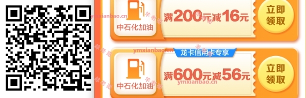 微xin识别,直接领,需建行xyk付,满200-16/600-56,可充中石化余额