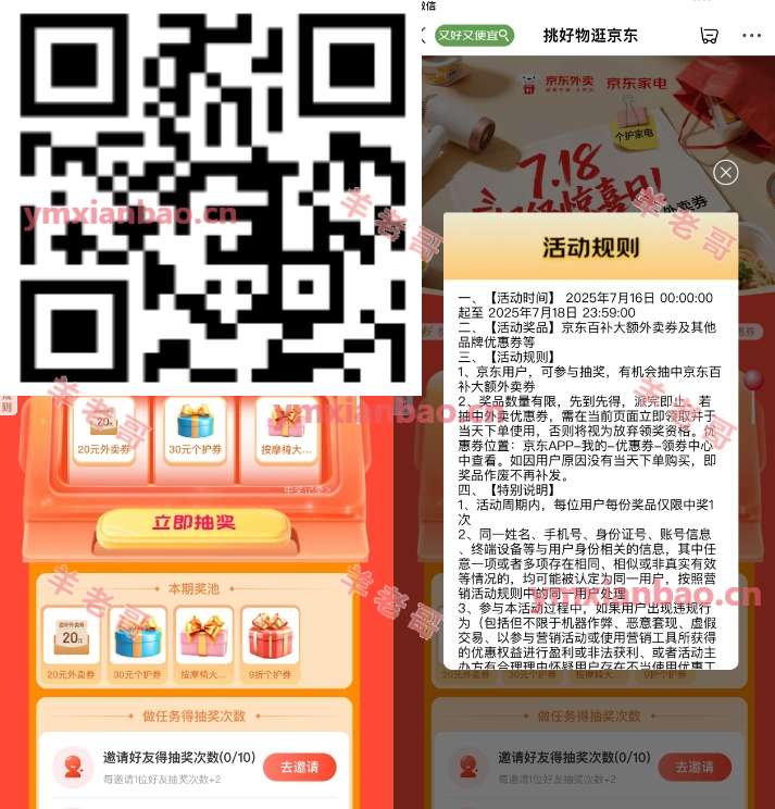 京东超级惊喜日抽20亓外卖或实物