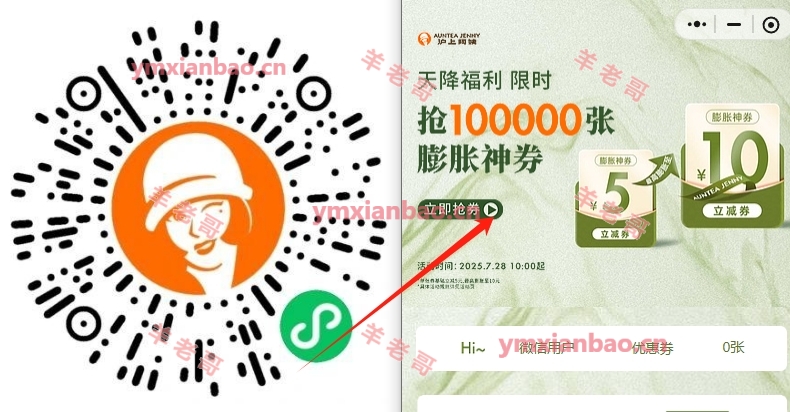 10点抢10w份5券,领券后膨胀最高10亓券,可以0喝部分,或自选其他满减。