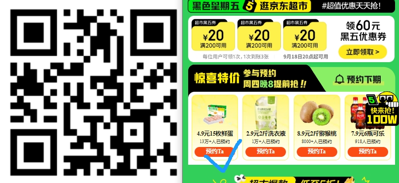 京东app识别,需先预约,以下时间点可以抢鸡蛋,每周四20点/20点30/22点,每周五10点/16点/20点/22点