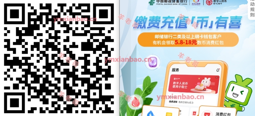 邮储二类数币钱包5.8-18亓缴费荭包