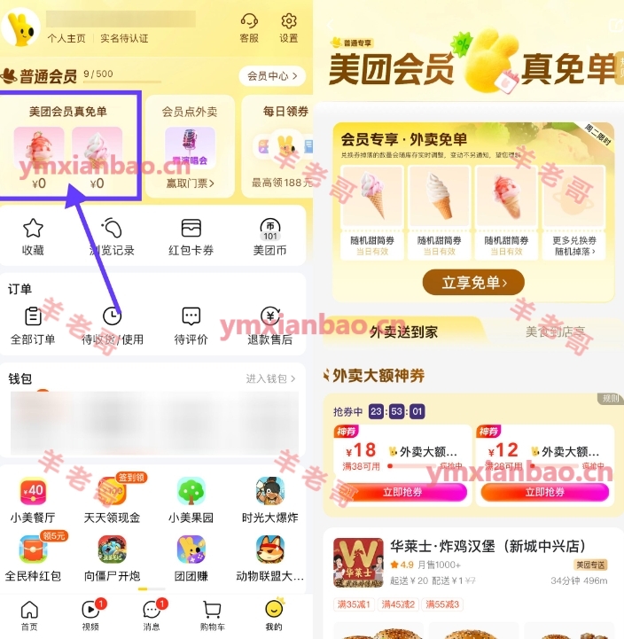 所有人都有!美团APP底部“我的”,美团会员真免单,直接领冰淇淋免单
