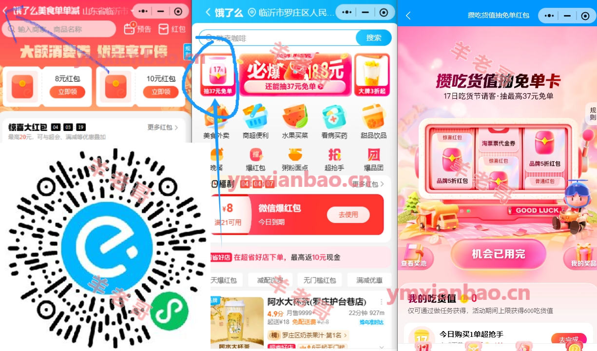 饿了么抽17-37亓免单
