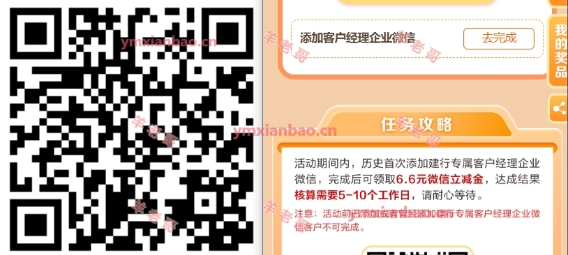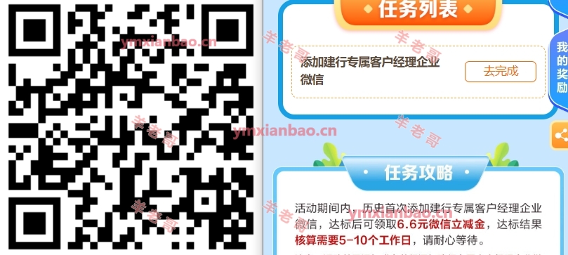 建行首次添加企微6.6亓立减金