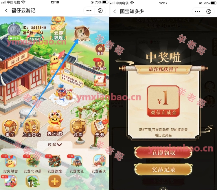 中行APP搜索“福仔云游记”,悬浮-国宝知多少,答案:绿,龙,正确