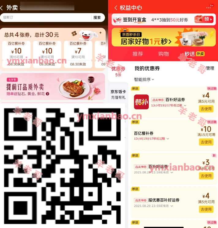 京东app识别,每天30亓券包,其中包含外卖叠加神券