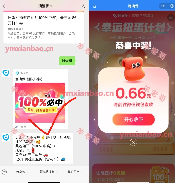 微xin公众号:滴滴保,回复“扭蛋机”,点推文进入抽0.66亓,用滴滴实ming过的账号抽,测试2中2。