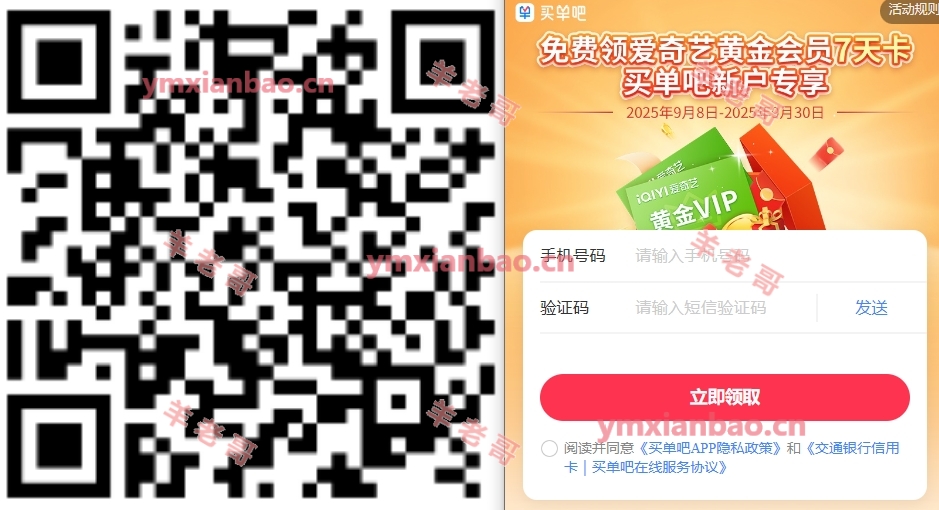 买单吧领爱奇艺周卡,兑换码,限新,不需要绑卡(如果提示绑卡 左上角返回就行),以前领过的超过半年,登录app注销再领即可,买单吧app个人中心卡卷复制卡密