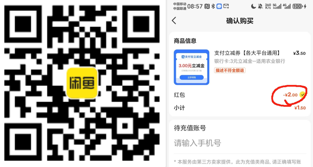 闲鱼1.5购3亓zfb立减金