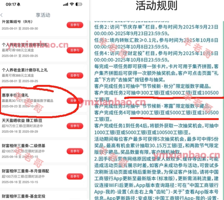 工行αpp,任务中心,享活动-惠享丰收五重,可以换立减金,我的-工银i豆可以兑东西,或者攒着以后再换微xin识别,1100豆就可以换1立减金:mp://kVwTqfYuaJ4Ekap
