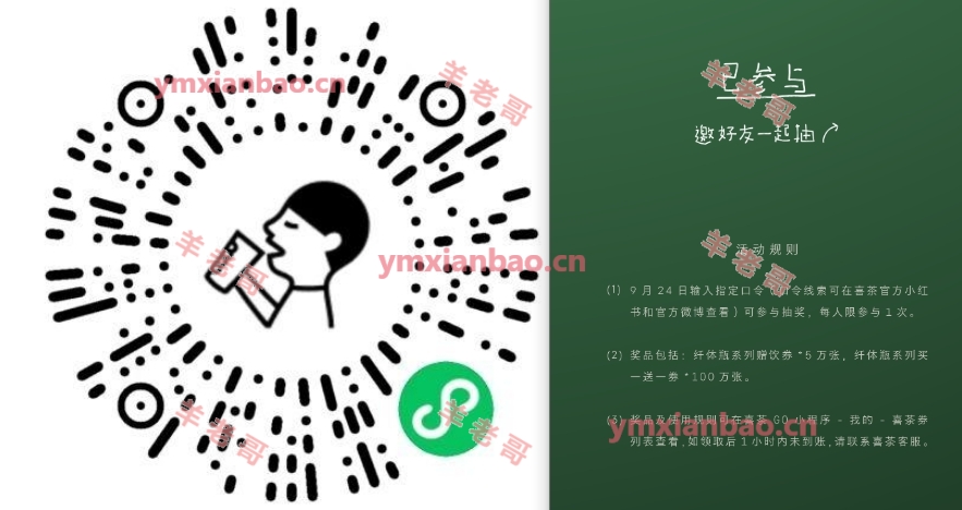 微xin识别,喜茶抽认免单券,口令:100000000