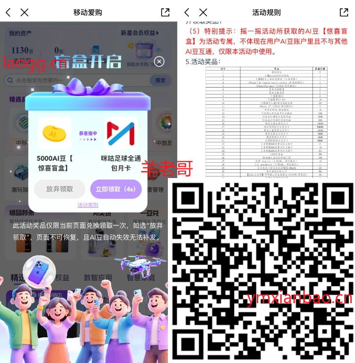 微xin识别,移动用户登录直接抽盲盒(不弹窗就是无),有腾讯视频、爱奇艺、优酷会员或实物等,非必中