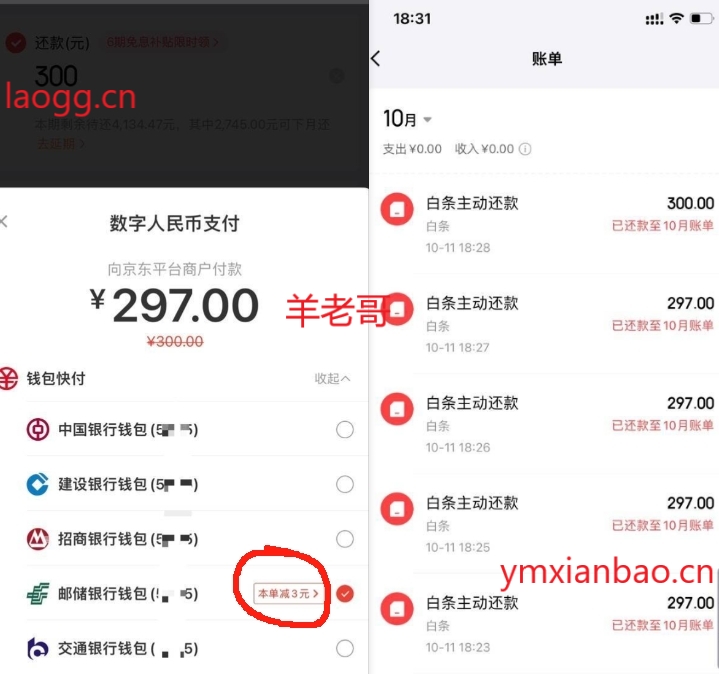 京东金融app使用邮储数字钱包,还任意xyk或白条,邮储数币300-3 可多次,控制间隔别太快,容易引起xyk风倥