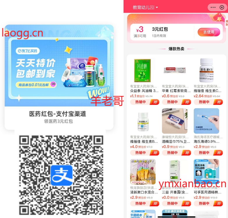 每天可领1次!支付宝APP扫码,领取3亓医药券,下拉有很多0~1亓的实物