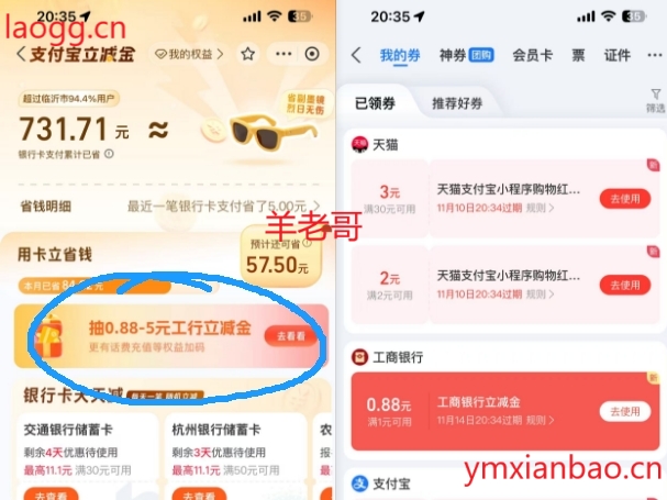 支付宝搜:立减金,如图横幅点进去抽工行0.88-5亓立减金